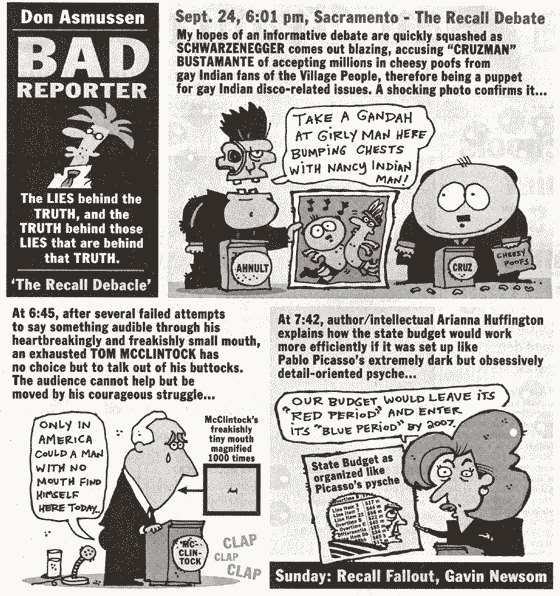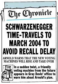 Governor AHNOLD of CALL-EE-FORNIAI followed this one pretty carefully. It was the most fun since the Bush/Gore race in November 2000. I think that I first heard of this recall in about April. All the radio commentators laughed it off as did Gray Davis. I knew it was important when the recall collected sufficient signatures to make a recall election possible. I thought that Davis might survive recall. But then Arnold announced, and I sensed that all was lost for the democratic governor. My "NO on RECALL and YES on BUSTEMONTE", carried Marin County, but not the rest of the state. |
