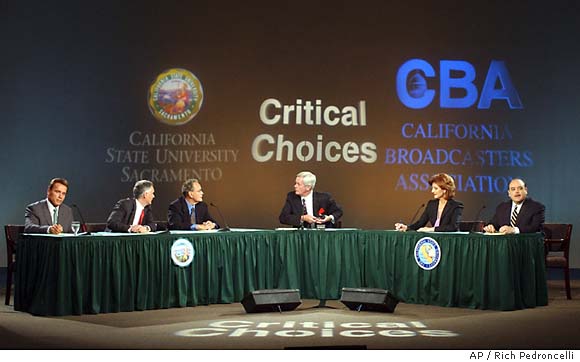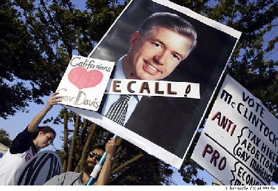 Once confirmed by official tabulations, Davis would become the first governor recalled in California history, ending his tenure as chief executive of the nation's largest state. Schwarzenegger, in his first run for public office, used an energetic, well-managed campaign with a platform based on straightening out the state's economy and ending the alleged influence of special interest groups in the capital. The actor's run capitalized on voter anger over vehicle registration taxes, allowing illegal immigrants to obtain drivers' licenses, and the state budget. |