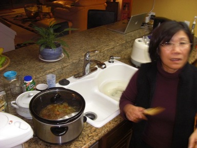 Here's Justin, Kim and Diane fixing snacks