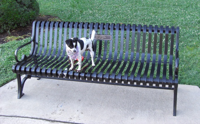 On our morning walk, Jody and I stopped off at the park bench memorializing my brother Jack