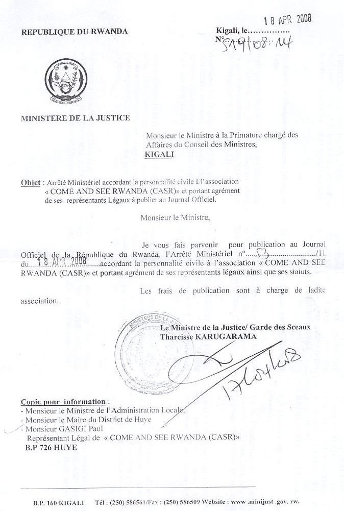 Registration Documents of Come & See Rwanda