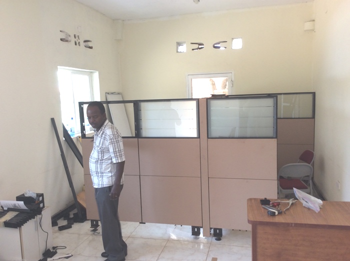 One of the rooms needed partitions. Here they'er being installed.
