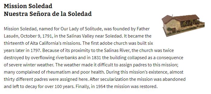 Day five begins on Sunday at Monterey, then to missions at Soledad,