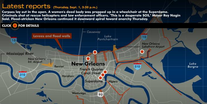 Katrina's winds have left behind an information vacuum. And that vacuum has been filled by rumor. There is nothing to correct wild reports that armed gangs have taken over the convention center. That two babies had their throats slit in the night. That a 7-year-old girl was raped and killed at the Superdome.