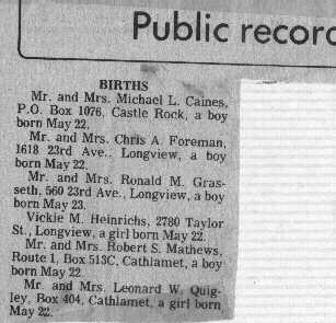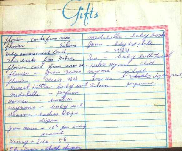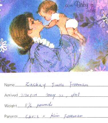 ![]() This is a charge for Kim's checkup before Zac was born ![]() This is Kim's recollection of the event ![]() For a while we kept track of this age / weight / height ![]() These are the first places that Zachary went ![]() Kim wrote down the gifts that she received for Zach's birth ![]() This was the notice in the church bulliten, along with a picture of aabout the same time ![]() This is the birth announcement in the Longview newspaper ![]() These are the thank you cards for the gifts we received |