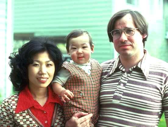The three of us in front of our house