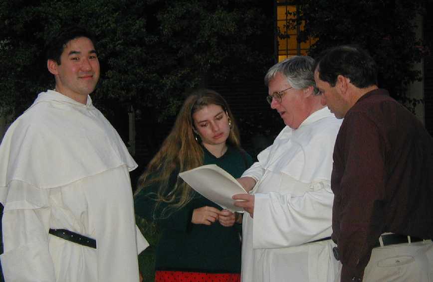 Brother Zachariah getting blessed by Saint Dominic