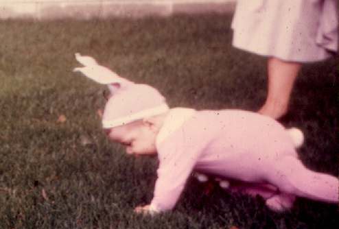 Charlotte holds Shelley the Bunny in 1962