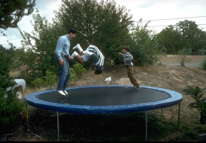 Zachary, Johnny, and Simon upside down in 1992.