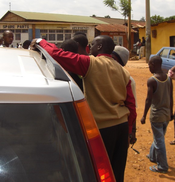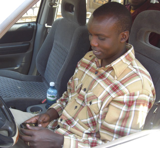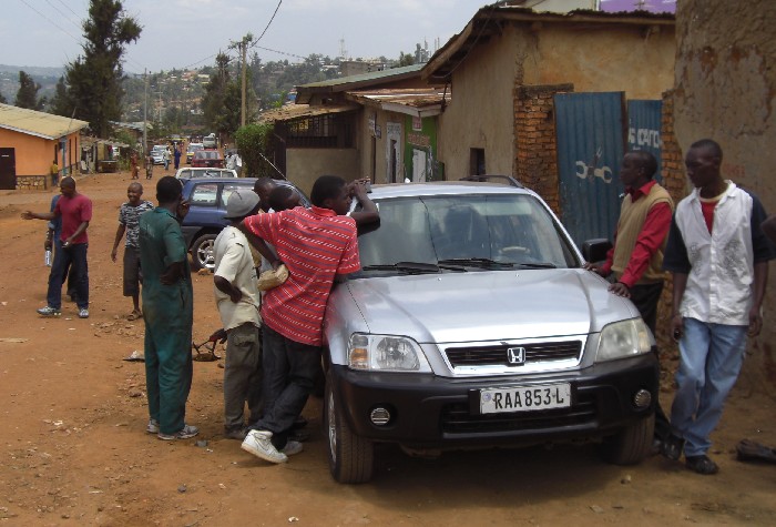 Frank in Kigali getting a stolen car part replaced