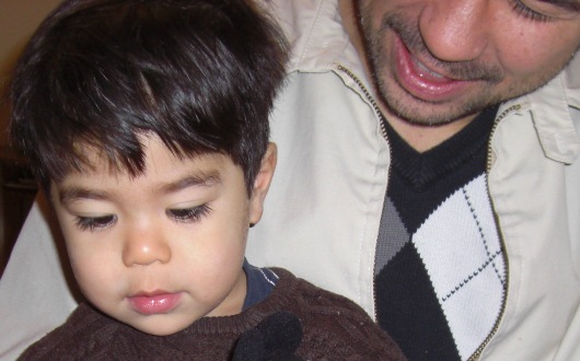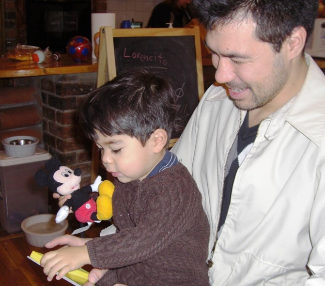 This a video of Simon reading a book to Lorenzo