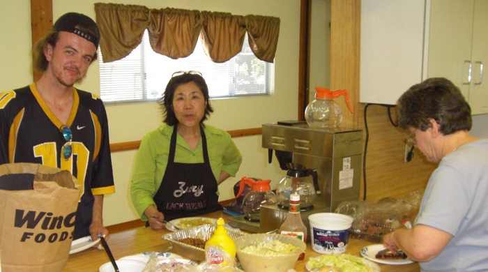 Here's Justin, Kim and Diane fixing snacks