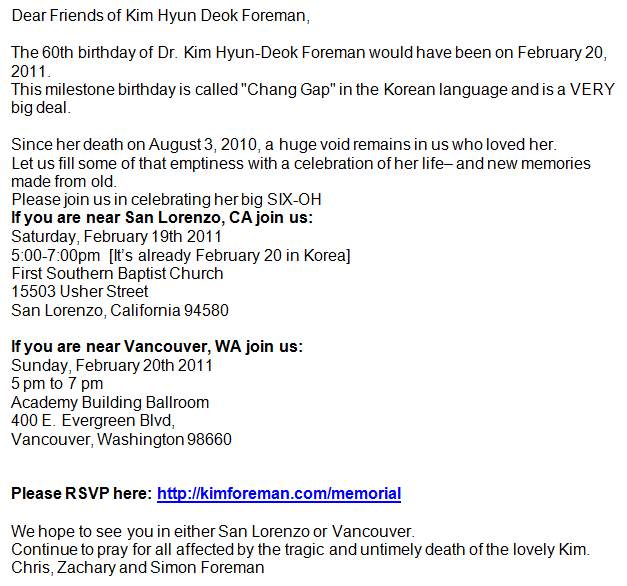 We celebrated Kim's 60th Birthday in two places: at our church in San Lorenzo and in Vancouver, WA, at Frank's church. | |