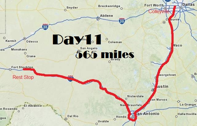 We left Uncle Stutz about 10pm when he was tired. Zach and I wanted to travel at night and miss some heat, so we drove on to about 1am.