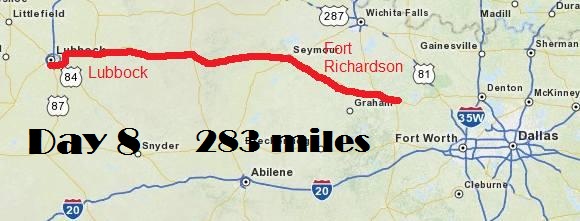 Jody and I spent the night at Fort Richardson, northwest of Dallas.