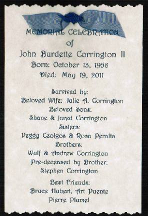 I presided over two funerals in June: for Marty Starry Pardue on June 10 and for John Corrington on June 18