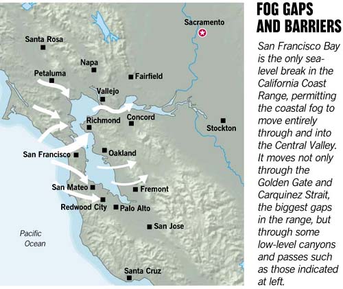 FOG GAPS AND BARRIERS San Francisco Bay is the only sea-level break