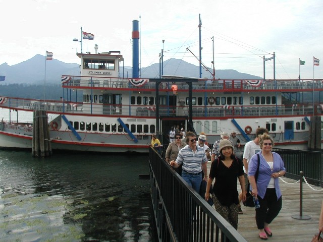 Six kids at the bow ![]() Six in-laws at the bow ![]() Watching the scenery go by ![]() Leaving the boat ![]() |