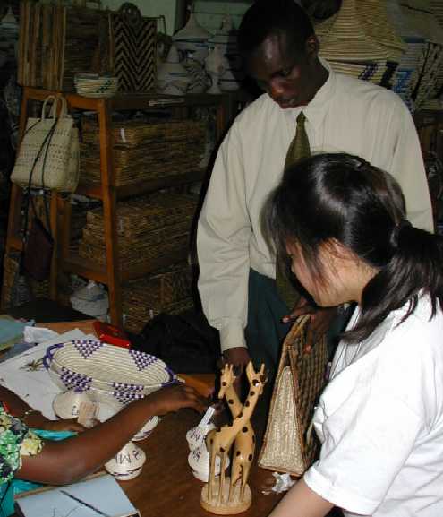 Jean is buying some souveniers