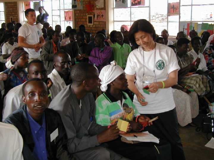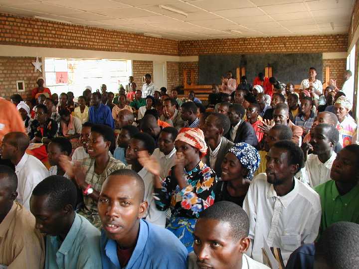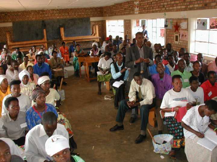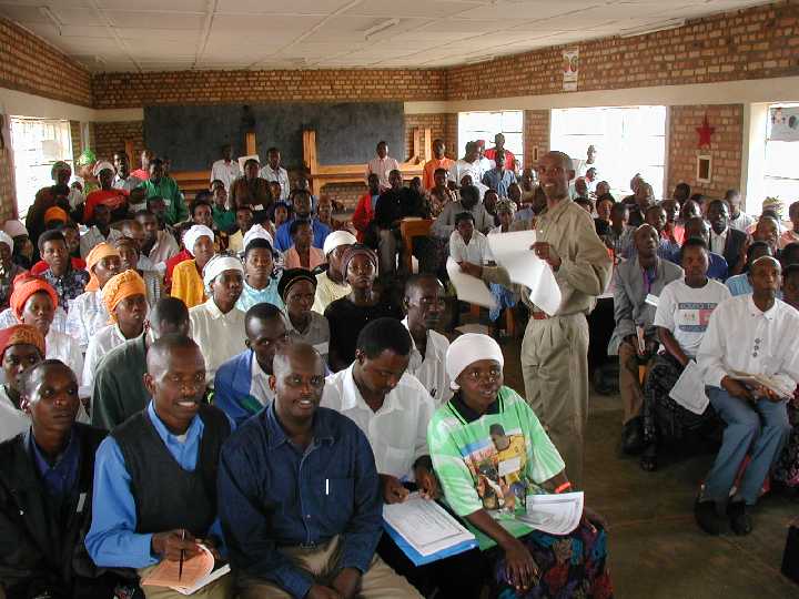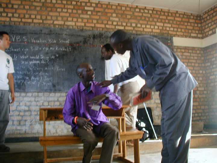 Andrew, Kim and Pastor David in front of the classroom