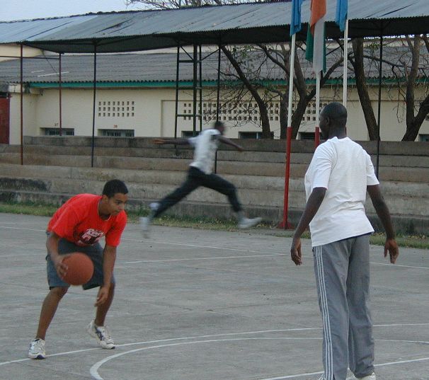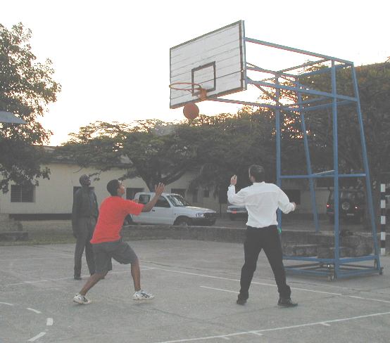 While waiting for visas, David found a basketball court