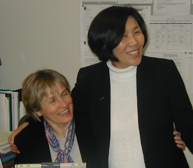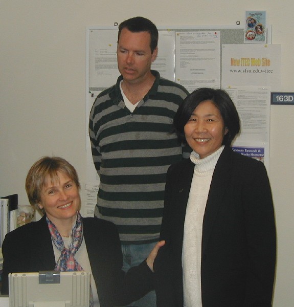 Kim at work with Anna and Brian