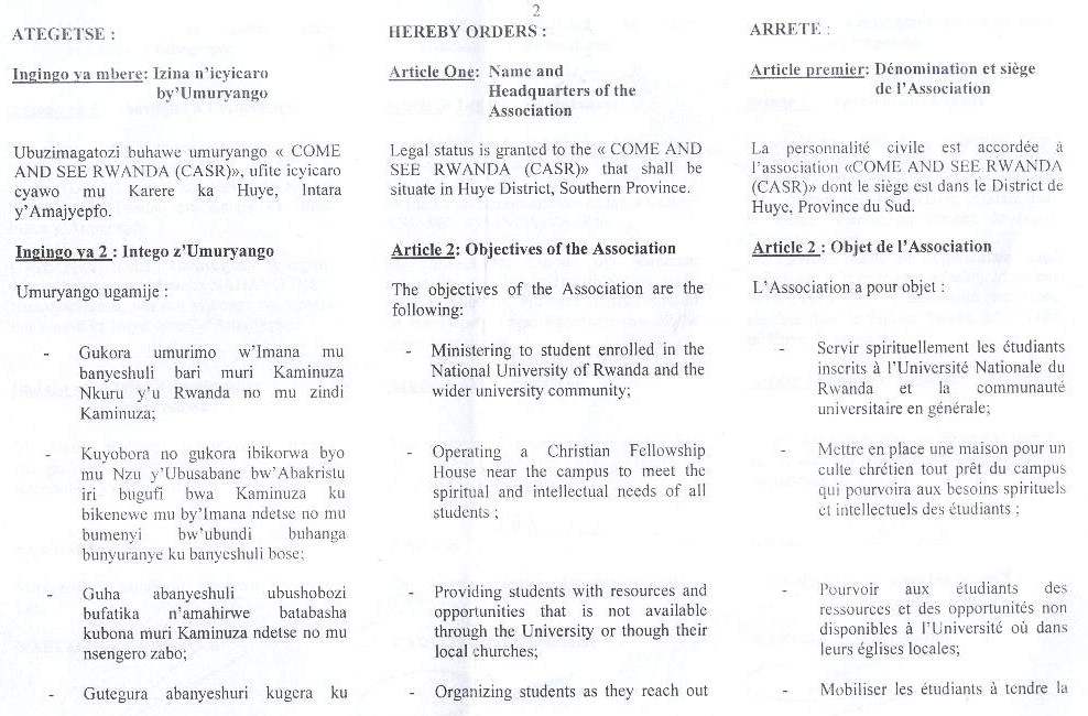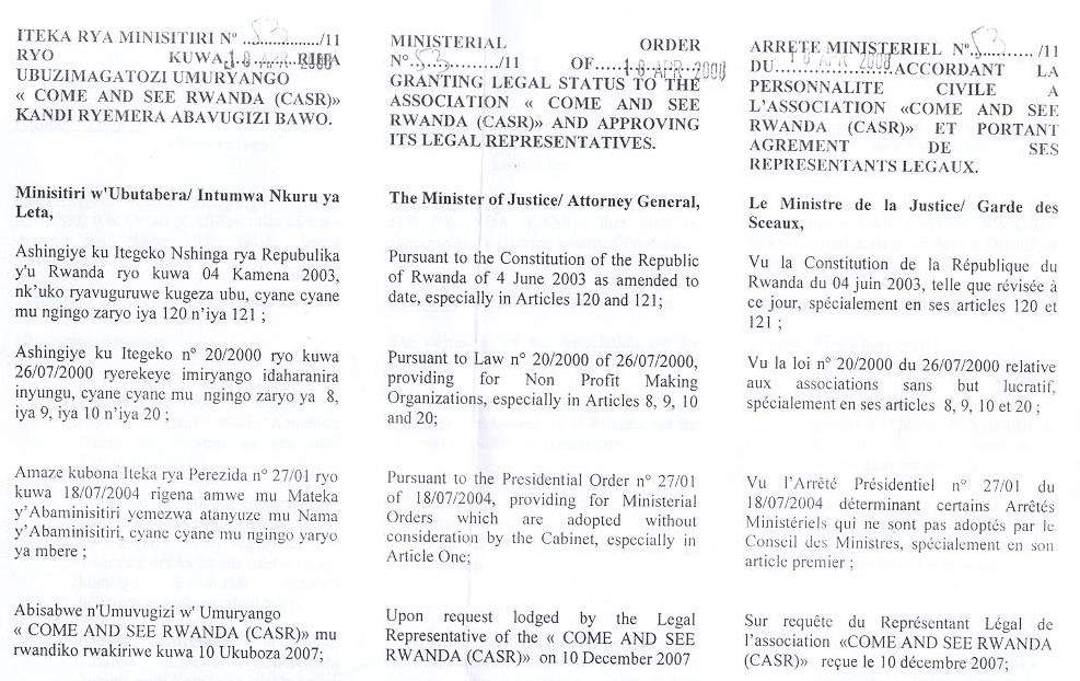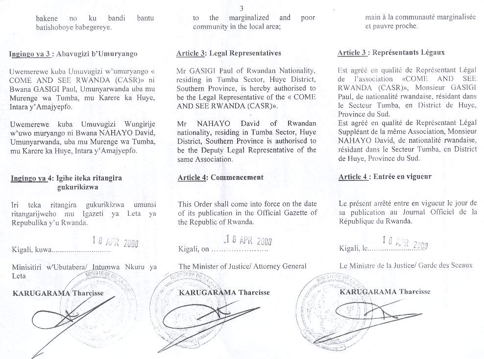 Registration Documents of Come & See Rwanda