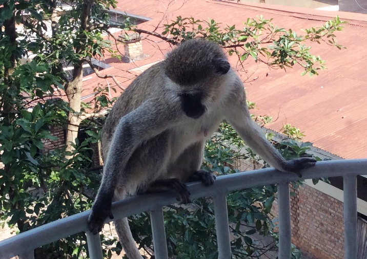 As I guessed, it was a vervet monkey. After I stepped out, I saw two of the critters hanging from a rail.