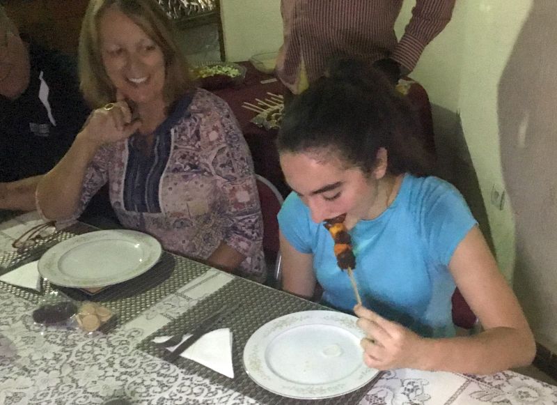 And Shea practiced being a missionary by eating goat on a stick