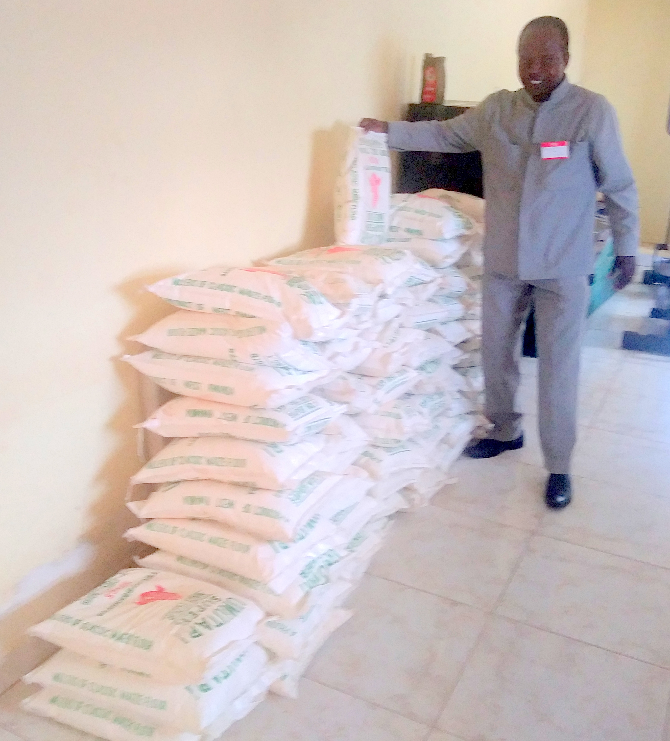 David with the rice bags given to the women