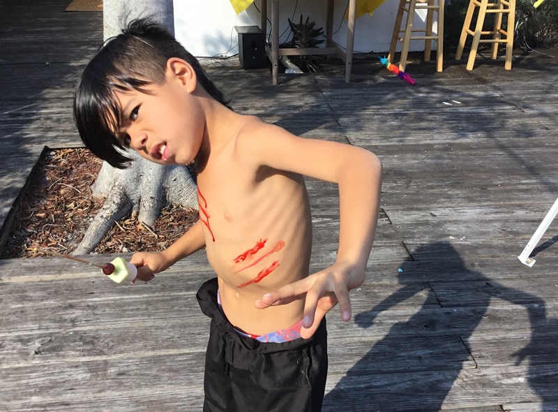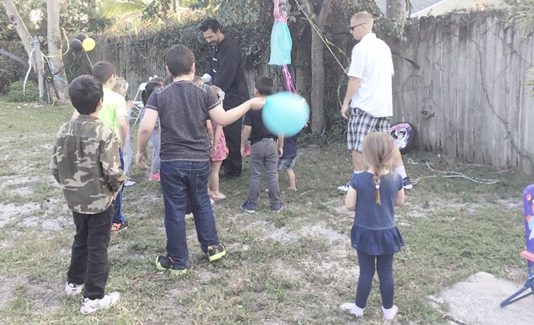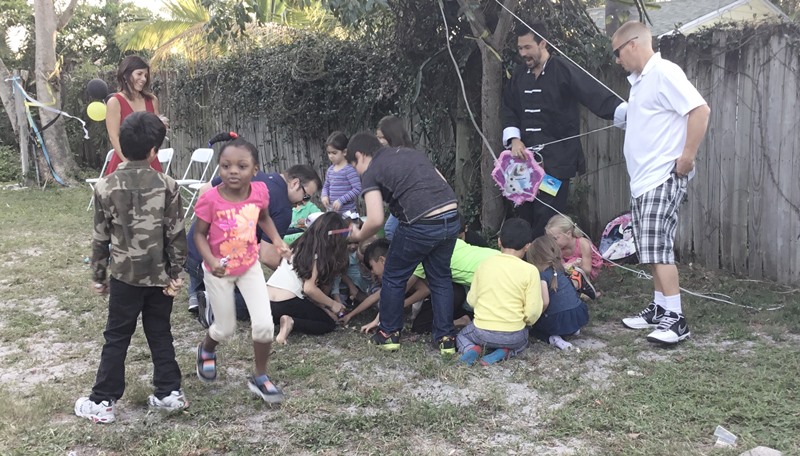Picking up the candy when the pinata was broken