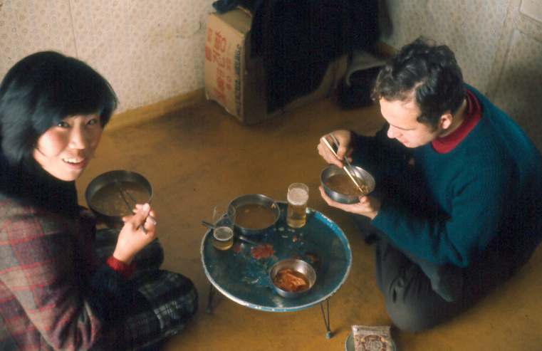 Kim eating with Meng