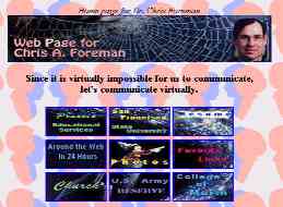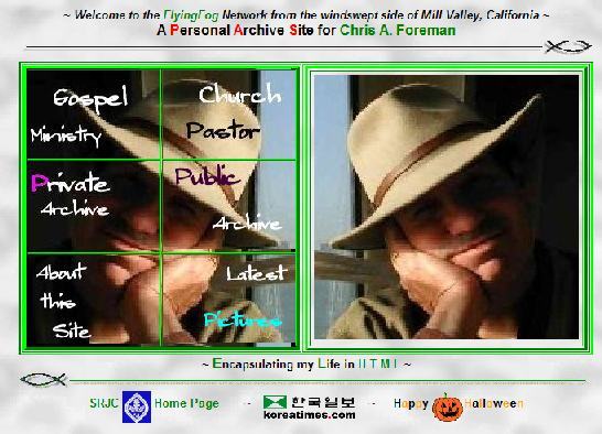 Web Class at GGBTS and I put a lot of time in to really overhaul what I was doing. In this web class I learned how to make a framed site. That is how I have created my home site since. (Although it has since gone out of style). This was my first term at GGBTS and the only other class I had was counseling. I had a lot of free time to develop my site.I established by major categories of "Identity", "History", 'Activity" and "Photography". I also began to use some Anfy Java Applets. I switched by Web Host to Siteturn |