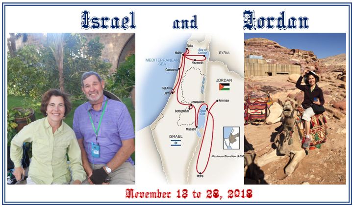 Liz and I visited the Holy Land in November 2018. We had a great time. Click the five-minute video of this adventure This travel with Liz is password protected. back to the World Index.