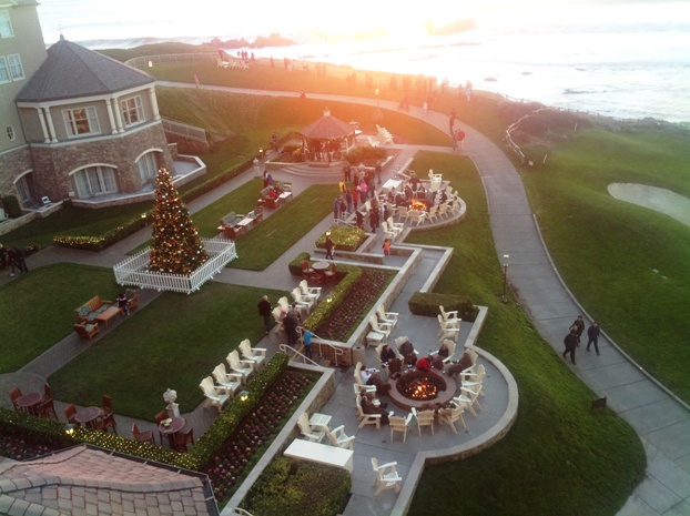 Waves crashed as the artful sun painted the winter sky a palette of pink pastels. Hotel guests mingled below our window, soaking in the spender of the scene. A piping Scotsman in kilts regaled his outdoor audience with “Amazing Grace.” Shimmering Christmas lights enhanced the magic of the moment.