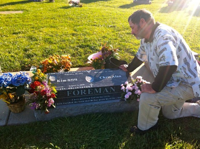 Frank opened the service by reading Kim’s obituary and saying a prayer. A Korean friend spoke a prayer in Kim’s native language. Then the family groups made their way to the platform one by one.