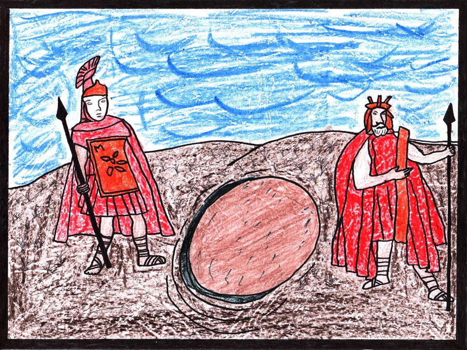 At the moment of His death, there was a strange darkness in the air and the earth trembled. A Roman officer exclaimed “surely this is the Son of God”. To confirm that Jesus was one-hundred percent dead, a soldier pierced the heart of Jesus with a long spear. Blood and water gushed out. There was no doubt. Jesus Christ, the Savior of the World, was dead. Near the place where Jesus was crucified there was a newly made tomb – carved from rock – belonging to a man named Joseph. Along with another man named Nicodemus, they carried the lifeless body of Jesus to the tomb. Just as the Friday sun was setting, they wrapped the body in grave clothes for burial, placed it in the tomb, and rolled a large stone to seal the grave. Roman guards were posted at the entrance to make sure that the grave would not be disturbed. |